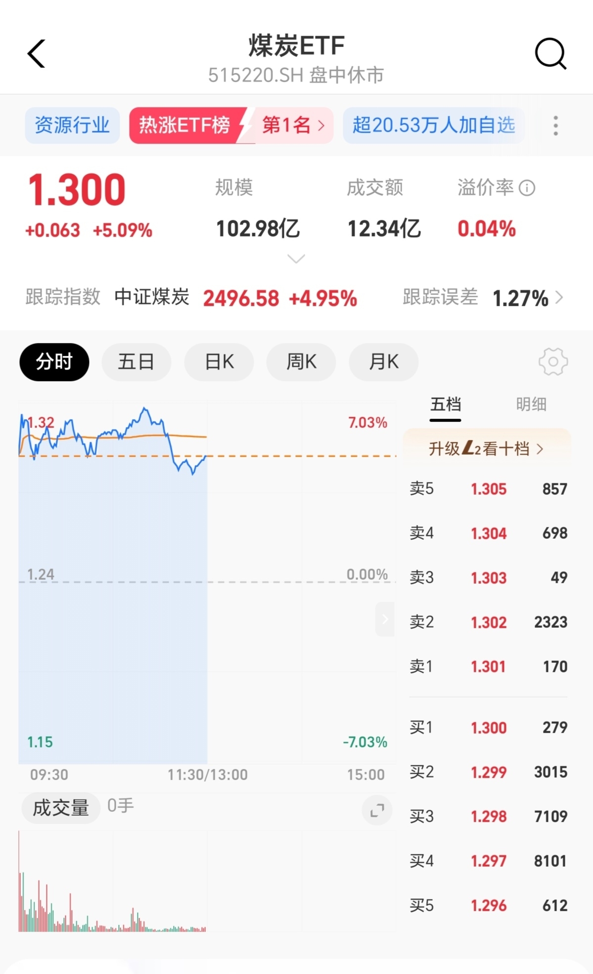 重仓煤炭板块的,今天煤炭飙升,盘中一度涨超6%!