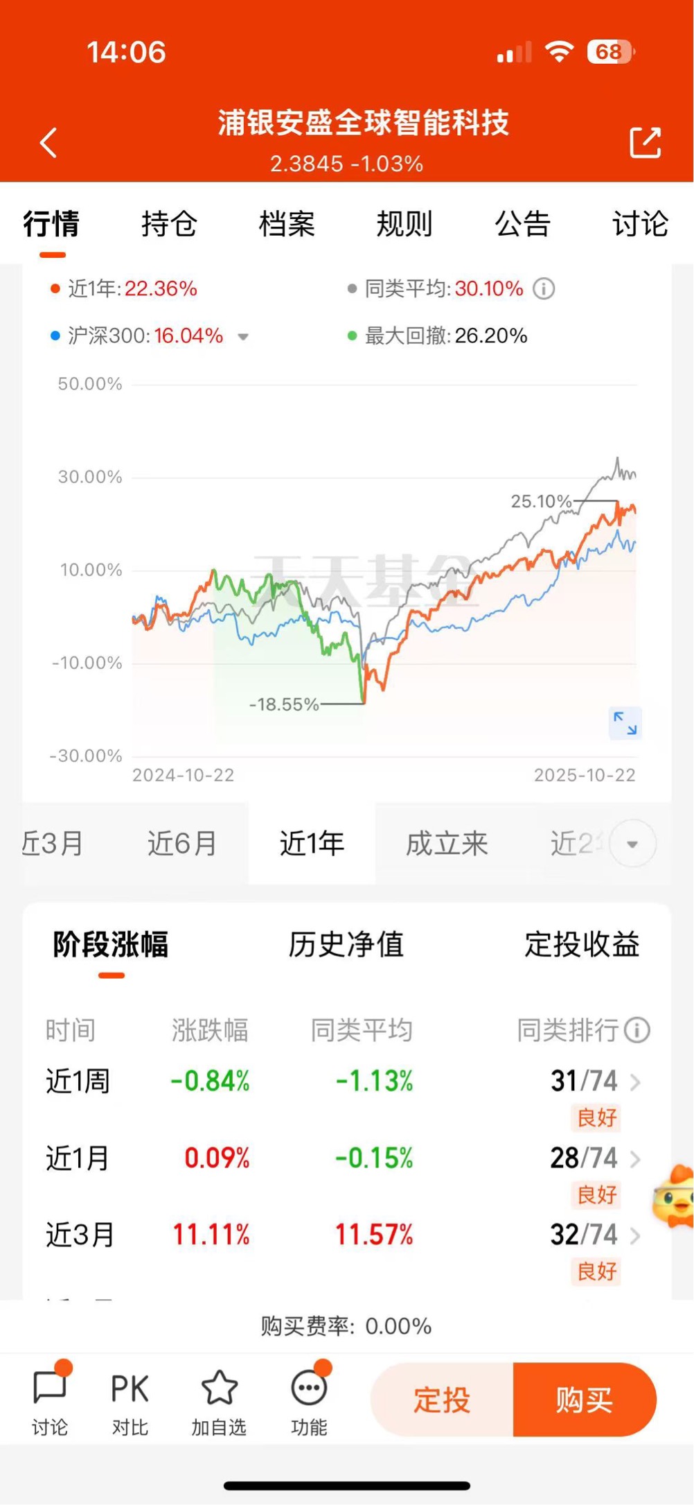 浦银安盛全球智能科技近3个月、近6个月都跑赢纳指,近6个月涨超40%,看的准弹性高,是个不错的选择$浦银安盛全球智能科技(QDII)C$