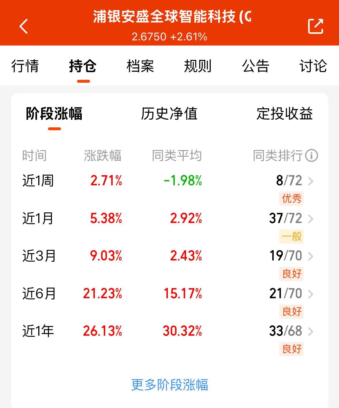 浦银安盛全球智能科技又吃肉了,2.61%的涨幅在美股基金里超能打$浦银安盛全球智能科技(QDII)A$
