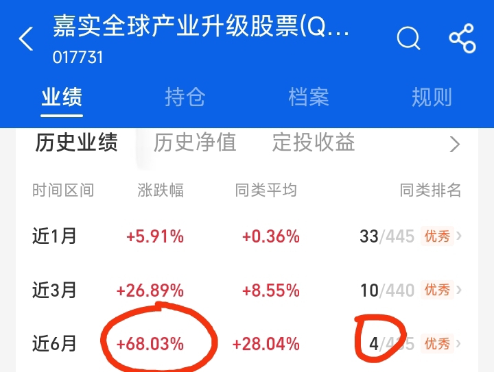 今天市场给力又吃肉了,$嘉实全球产业升级股票发起式(QDII)C$ +1.65%,近半年涨了68.03%,排名前四,显著跑赢同类,核心覆盖英伟达、美光科技等顶尖科技企业。2024年借美股半导体获利,今年又纳入中芯国际等港股标的,把握港股科技行情。未来AI资本开支带动芯片需求,继续看涨了。
