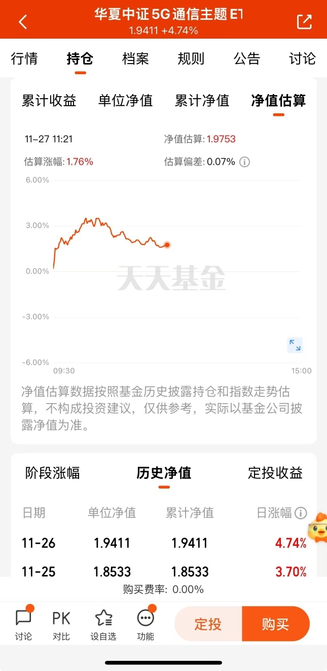 5G等科技方向成为资金的主攻方向,已经连红2天了,累计收益超8个点,昨天收益4.