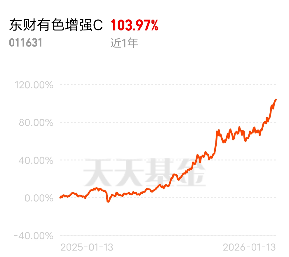 美国债务问题引发担忧,美元信用受损,有色金属成了保值首选!东财有色兼顾金融属性和工业属性,既能抗通胀,又能赚产业红利,近一年涨幅近 103.97%,配置太全面了。$东财有色增强C$