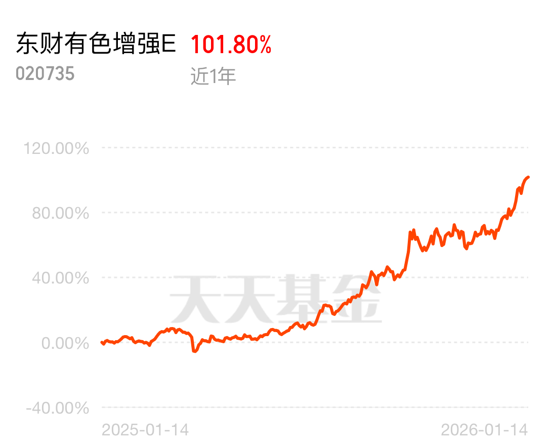 新能源 + AI 产业拉动,铜铝锂需求激增,有色板块再添增长动力!东财有色增强 E 近 1 年 101.80%,和纳指一样适合长期定投,每天赚点小钱,还不用担太大风险~$东财有色增强E$