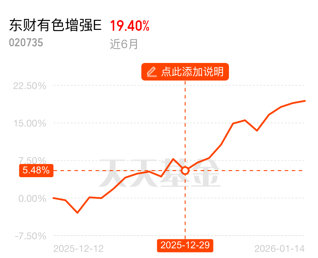 近期债市震荡没行情,资金全往有色跑,板块成交额连续破 1500 亿!东财有色增强 E 近 6 月 80.02%,它就是债基加强版,又稳涨又抗揍,什么时候进都能赚钱,比固收类香多了~$东财有色增强E$