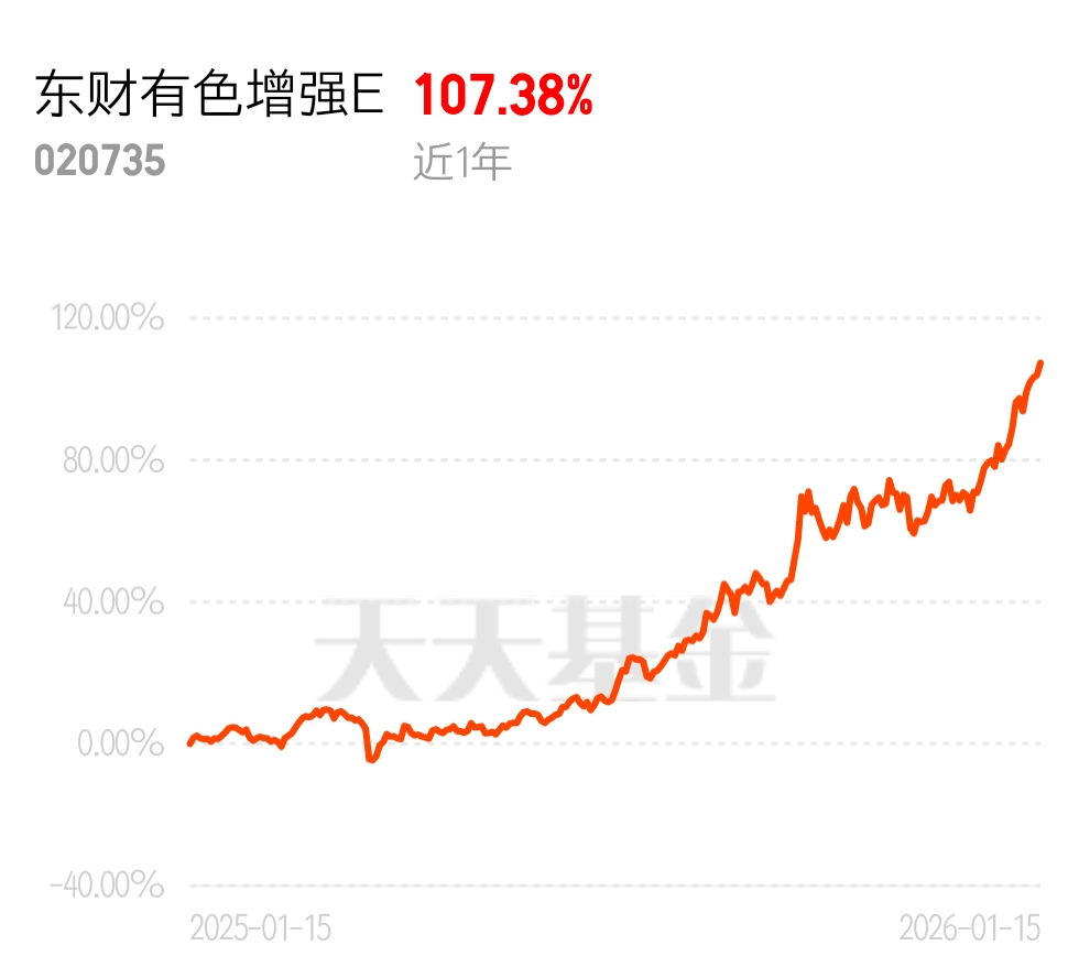 沪锡期货夜盘涨超 10%,有色板块彻底火了!CPO 慢慢跌,有色稳稳涨,对比太明显了。东财有色增强 E 近 1 年 107.38%,抗跌又能打,当初果断调仓过来,现在都赚 20 来个点了。$东财有色增强E$
