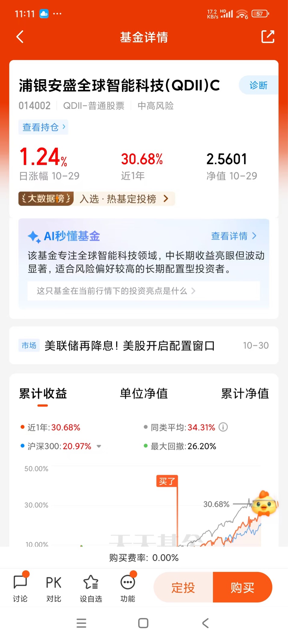 $浦银安盛全球智能科技(QDII)C$ 可以3-5年长期持有,开启周定投就当变相养成存钱习惯了,想乱花钱的时候往里充值满足消费欲