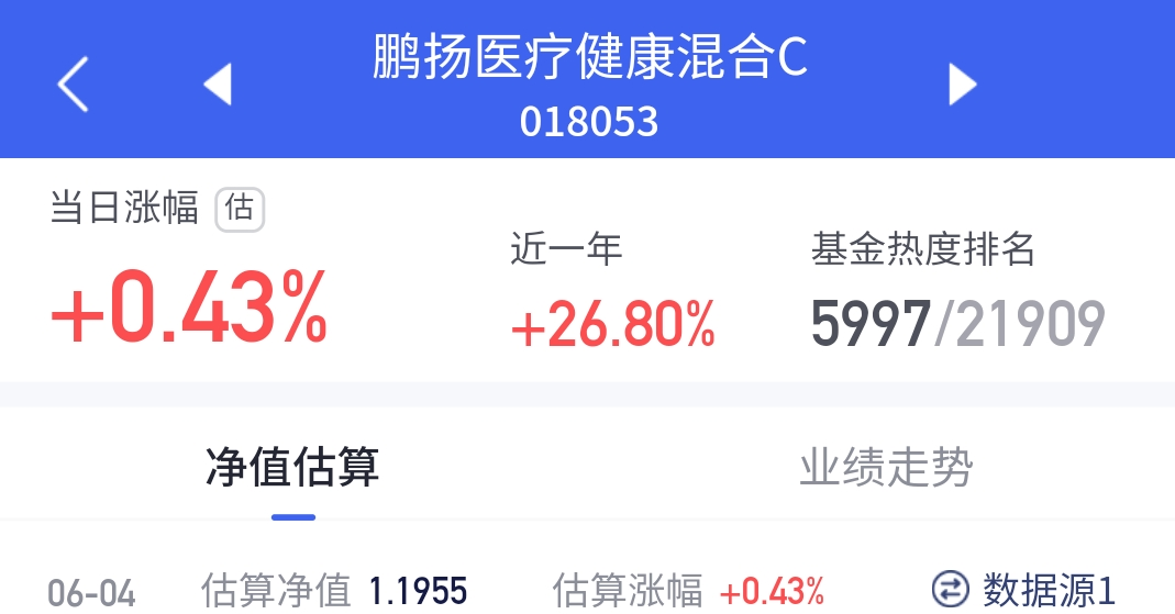 今天这个医疗继续小肉呀,盘面一看午盘回落了部分不过不影响呀今天这个$鹏扬医疗健康混合C$ 估值还是涨的呢,预估涨0.43%近一年涨了26.8%鹏扬医疗基金的持仓布局十分精妙,像惠泰医疗、恒瑞医药等优质企业都在其前十大重仓股之列。这些企业在各自领域不断创新突破,医药出口业绩提升不断扩展呢!看好这一波呀!