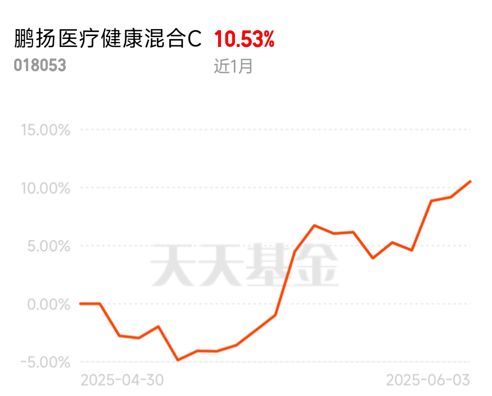 非常的棒啊,朋友们。今天的行情迎来了全面的上涨,医药板块上涨的幅度也非常的大。天,我也是加仓了。$鹏扬医疗健康混合C$ ,基金近期表现的也是非常的优秀,昨天单日上涨了1.24%,近一个月上涨了10.53%,近三个月上涨了27.19%,盈利能力强,长期持有,投资回报率也相当的高,而且近期创新药出海,频频的收获海外大单。未来仍有不错的增长空间,期待后期行情的收益。