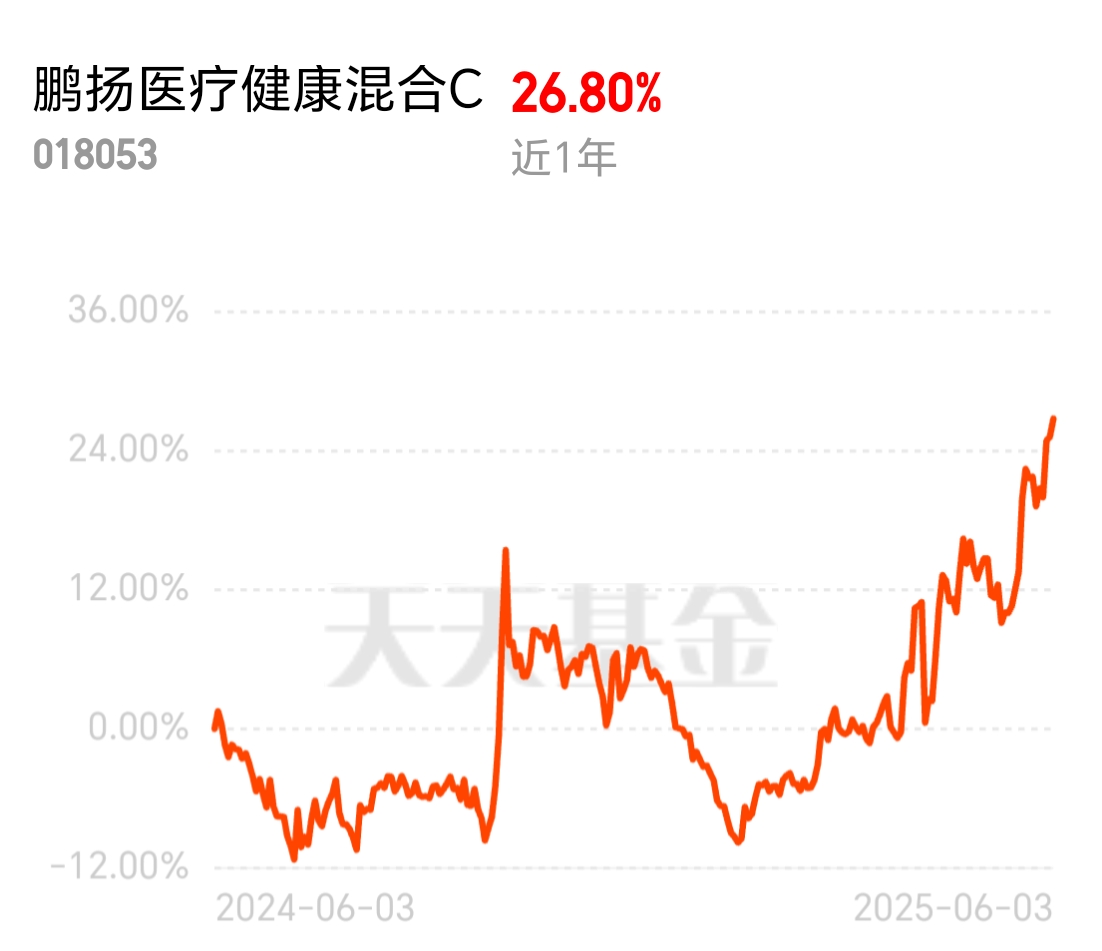 兄弟们,太给力力了,药回来了,天天涨,打不过就加入吧,今天股市三大指数都涨了,医疗板块表现特别突出。我关注的$鹏扬医疗健康混合C$ ,昨天涨了1.24% ,近一个月涨10.53% ,近三个月涨27.19% 。医疗行业本身是刚需,人口老龄化加上政策支持,长远看有潜力。我之前买了点,买少了,大腿都拍断了,今天又加仓1500元反正医疗刚需属性在,就算市场波动,需求也不会少,拿着心里踏实,等着慢慢涨就好。$鹏扬医疗健康混合C$