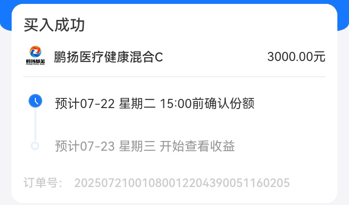 今天加仓$鹏扬医疗健康混合C$,主要看中其短期爆发力和医药行业的长期潜力。上周五