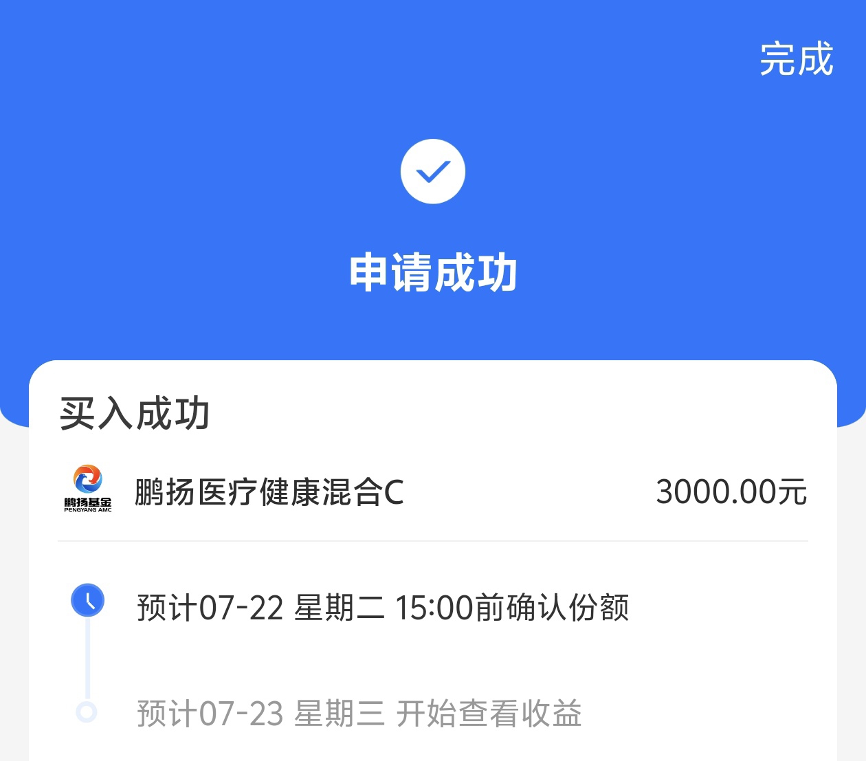 今天我也是上车$鹏扬医疗健康混合C$ +3000元,该基金近期表现的也是非常的优秀。上周五单日上涨了1.72%,近一个月上涨了17.31%,近三个月上涨了37.63%,近六个月的收益率高达61.07%,盈利能力强。各阶段业绩在同类基金排名领先,收益率远超同类平均。随着研发投入,国产创新药企业估值修复与业绩增长共振。上涨潜力大。政策利好,在“边际宽松+结构性支持”的双轮驱动下,医药板块将迎来新一轮的上涨。目前医药板块的估值处于历史相对低位,安全边际高。今天我也是布局了,期待后期收益。