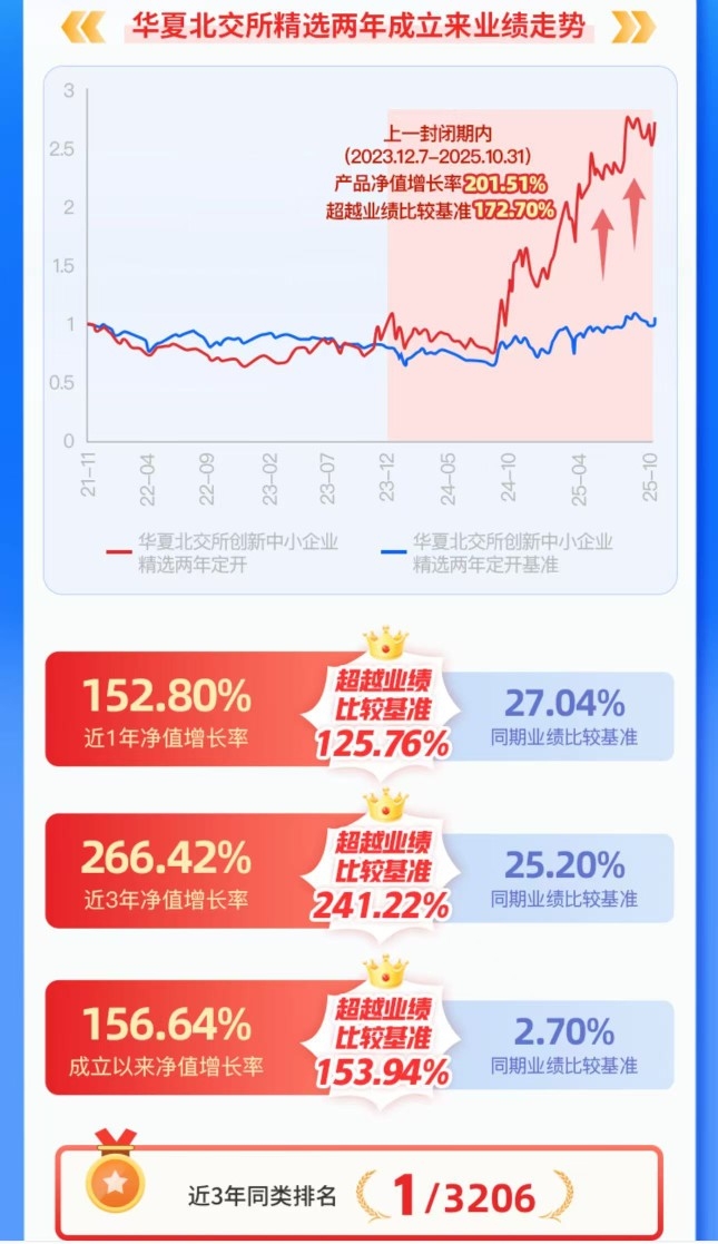趁这次开放期,继续布局$华夏北交所精选两年定开混合发起式$(014283),持仓都是创新中小企业,全是北交所细分龙头,长期成长空间广阔,现在政策积极,把握机会上车啦