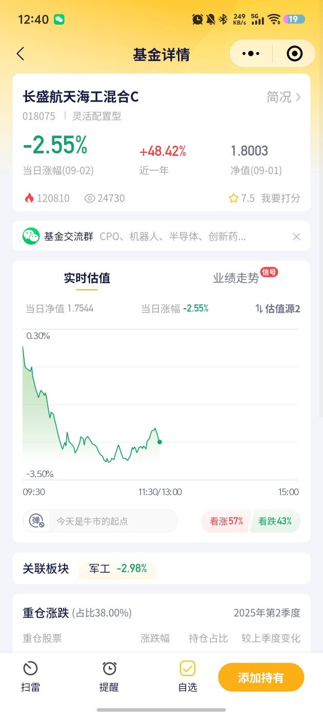 2. 长盛航天海工混合C:昨天跌0.41%,今天估算跌2.55%,这跌幅让人有点慌,航天海工板块啥时候能反弹呀。