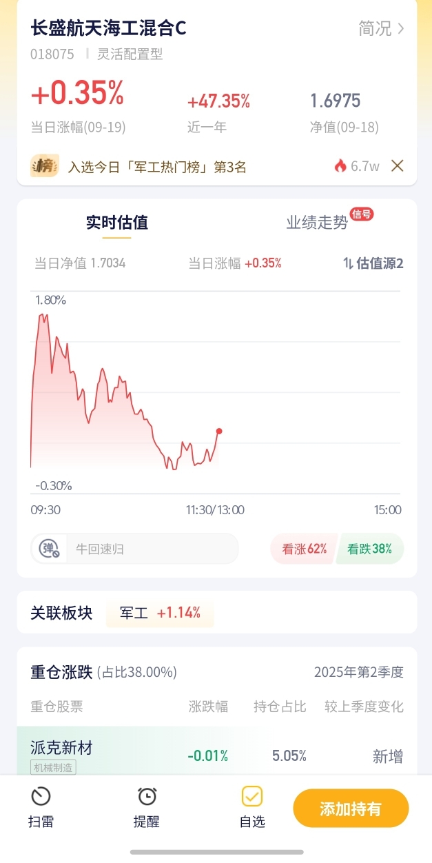 8. 长盛航天海工混合C:昨天涨0.87%,今天涨0.17%!航天海工这细分领域挺稳,慢慢涨也挺好,求个稳稳的小幸福~