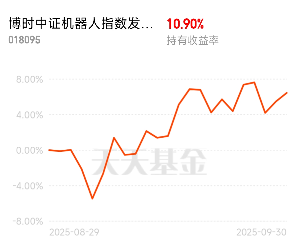 在10月的投资赛道中,$博时中证机器人指数发起式C$聚焦的机器人领域是极具爆发力