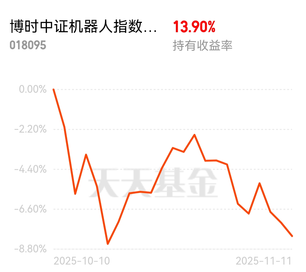 #工信部:深入实施“机器人+”应用行动# “机器人+”风口来了!$博时中证机器人指数发起式C$ 直接把机器人产业链的“肥肉”全装进来了!别以为它只沾机器人概念——这只基金精准覆盖了“机器人+”的核心环节:从工业机器人的伺服电机、减速器,到服务机器人的AI算法、传感器,甚至连机器人生产的自动化产线都没落下。近一个月它涨了21.3%,比不少纯机器人基金弹性更足,还吃到了政策落地的红利。更绝的是它的“攻守兼备”:持仓里既有高成长的机器人核心部件企业,又有估值偏低的自动化设备龙头,完美适配政策风口下的“成长+安全垫”逻辑。而且博时的基金经理擅长抓细分赛道的景气度,近期加仓的协作机器人、人形机器人标的,刚好踩中“机器人+”的应用落地节奏。费率也很友好,管理费1.5%/年,规模超25亿,流动性完全不愁。