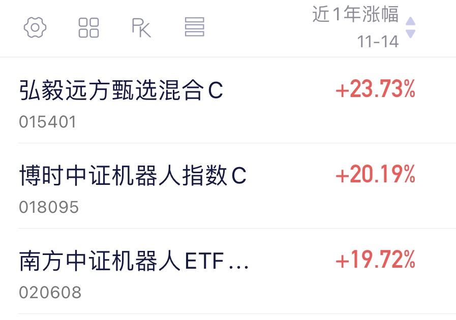 机器人赛道真是妥妥的潜力股!我持有的弘毅远方甄选混合C近一年涨了23.73%,收益直接超出我的预期。盘子小的优势太明显,上涨冲劲十足,我准备长期拿着,继续跟着机器人吃肉!