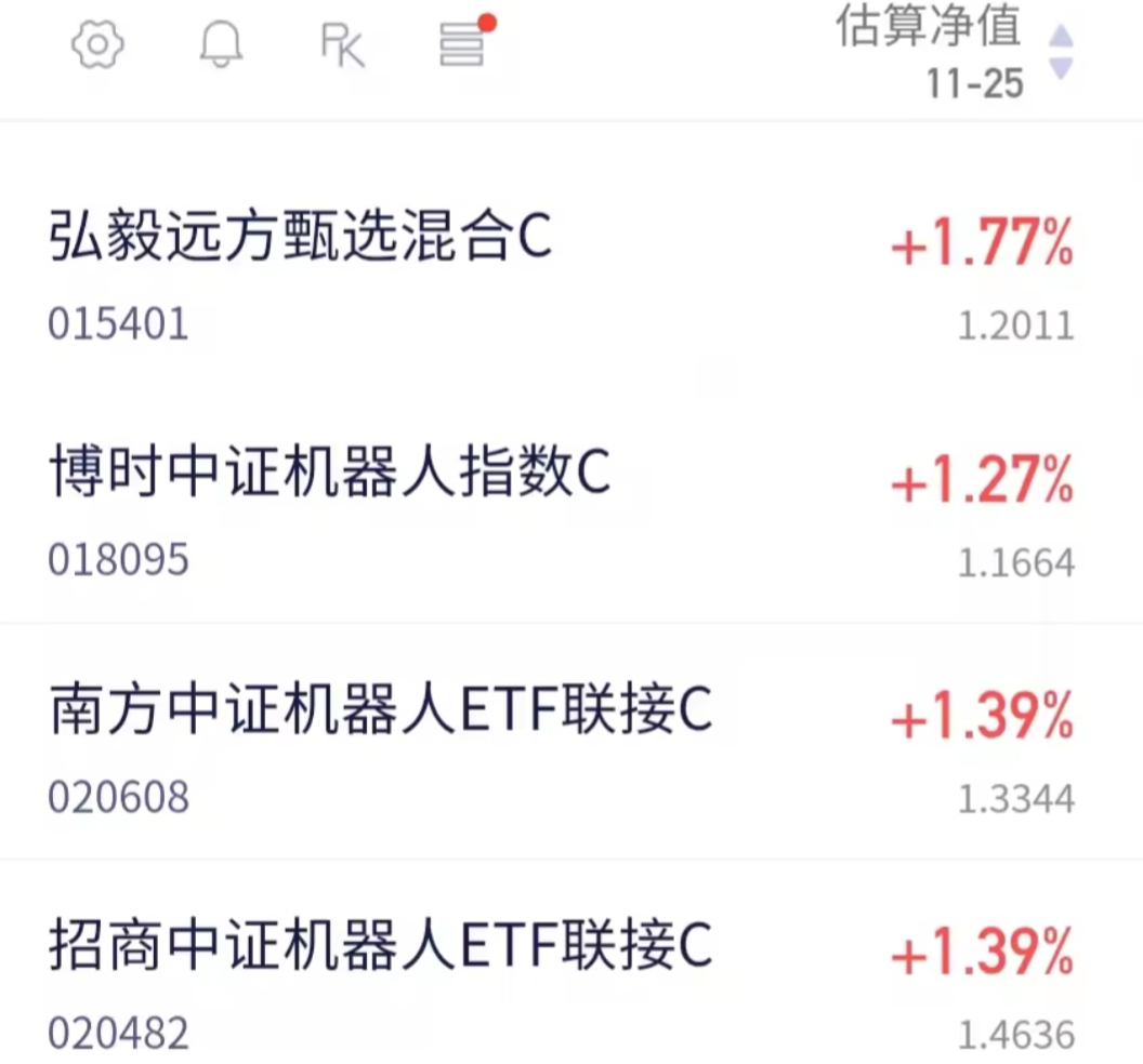三大指数高开高走一路飘红,机器人板块也跟着发力上涨 弘毅远方甄选混合C 精准持仓人型机器人相关标的,目前估值已涨1.77%,在板块风口下业绩相当优秀!赛道逻辑扎实,后续走势继续看好