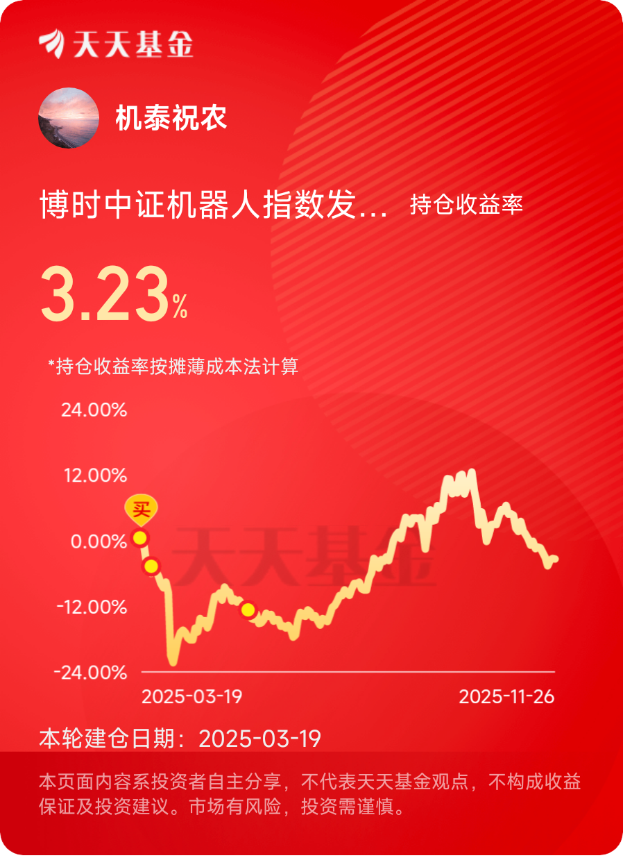 国家现在一直重点推这个行业,政策给资源给支持,长期发展心里跟明镜似的$博时中证机器人指数发起式C$ #晒收益#