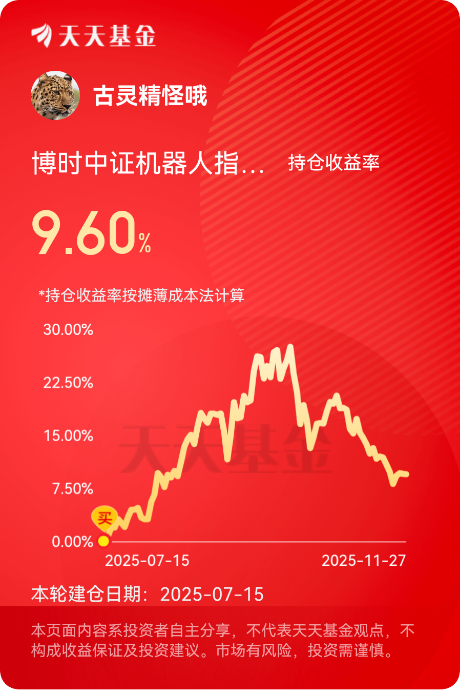 #大科技连涨 科技牛回归?# 最近大科技普涨,CPO又冲了的话题火热,市场对科技成长的热情再次被点燃。除了光模块,机器人与半导体这两大板块,正悄然汇聚新的动能,值得重点关注!机器人:从制造到智造的核心载体六部门印发促消费新方案,鼓励智能、绿色产品消费。机器人产业完美契合这一方向——它不仅是高端制造的代表,更是AI技术落地的重要场景。随着人工智能、传感技术的突破,机器人的应用正从工业领域向医疗、服务、家用等场景快速渗透,市场空间巨大。产业链上的核心部件、解决方案提供商,有望迎来价值重估$博时中证机器人指数发起式C$ 聚焦的机器人产业链指数成分,将直接承接这波技术红利,顺着AI+机器人的景气度上行趋势,迎来业绩与估值的双重增长空间。#晒收益#