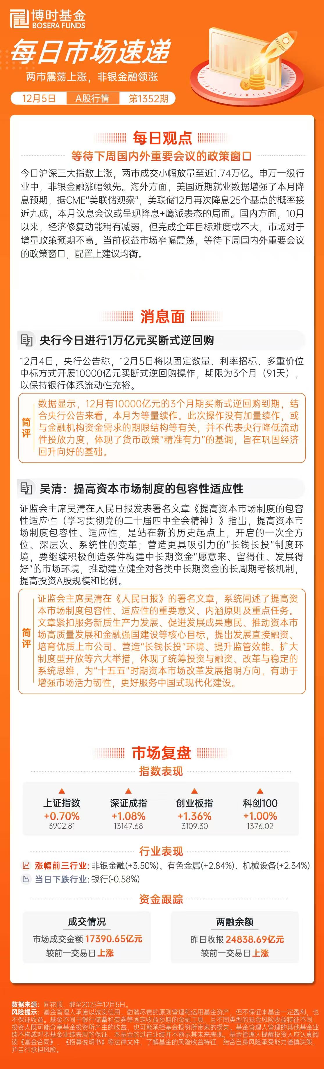 【博时市场点评12月5日】两市震荡上涨,非银金融领涨
