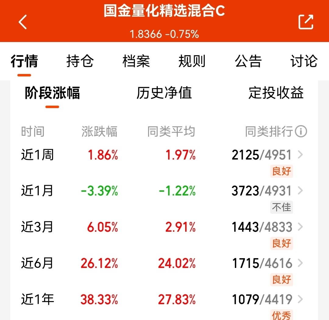 今天又是吃肉肉的,还拿了些$国金量化精选混合C$ ,已经不限额了,和国金量化多因子同策略的,各阶段业绩都还挺稳