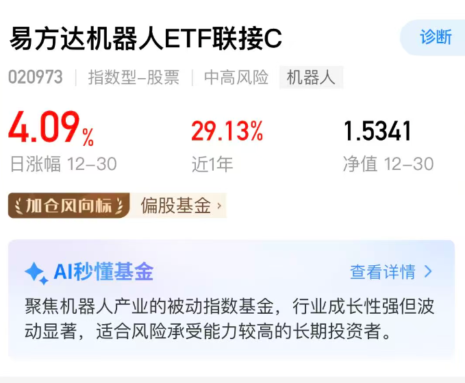 今天机器人板块行情大爆发,易方达机器人C净值更新大涨超4%,非常给力!