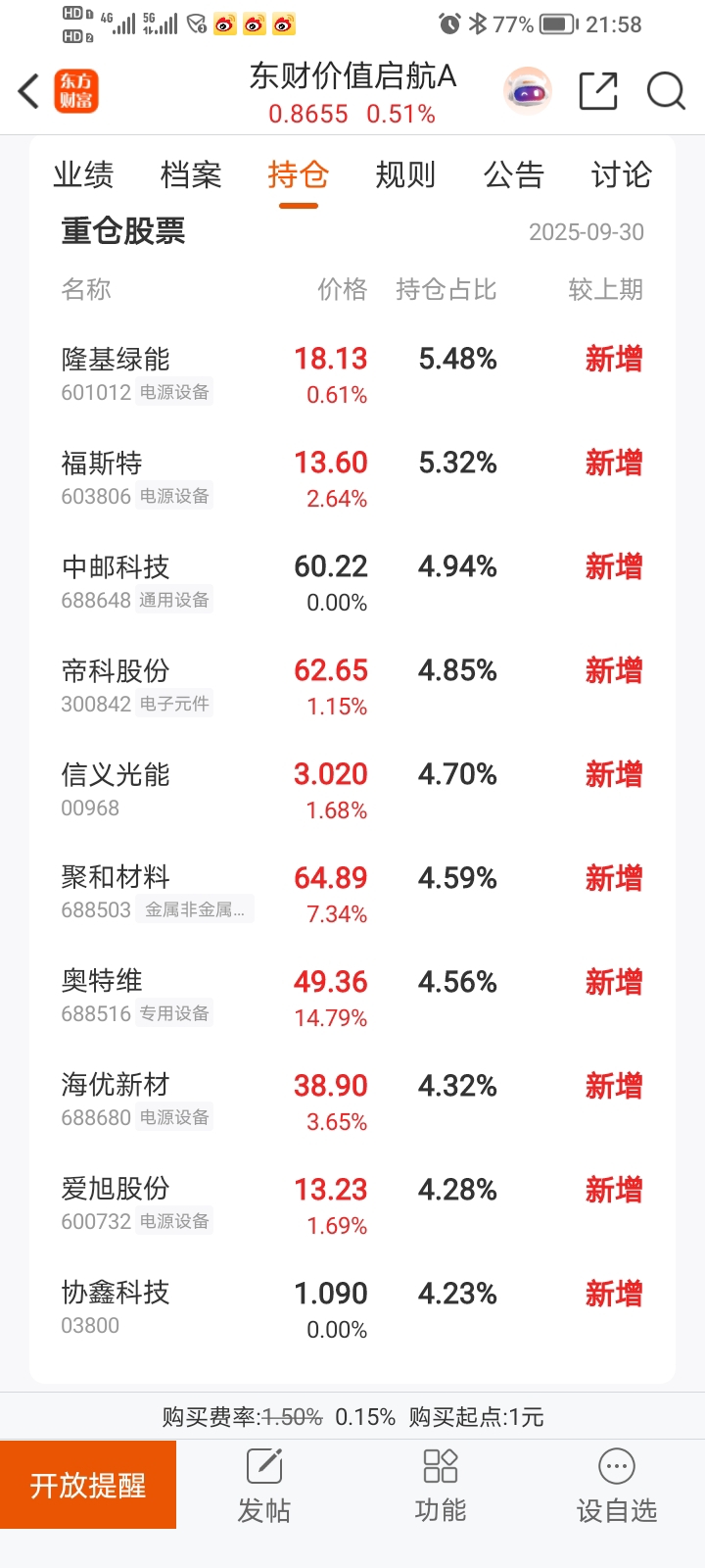 $东财价值启航A(OTCFUND|018096)$ 昨日(12-23)涨幅3.1%,但持仓排名前十支股仅三支涨,涨幅低于3%,怀疑昨日涨幅是否被高估?