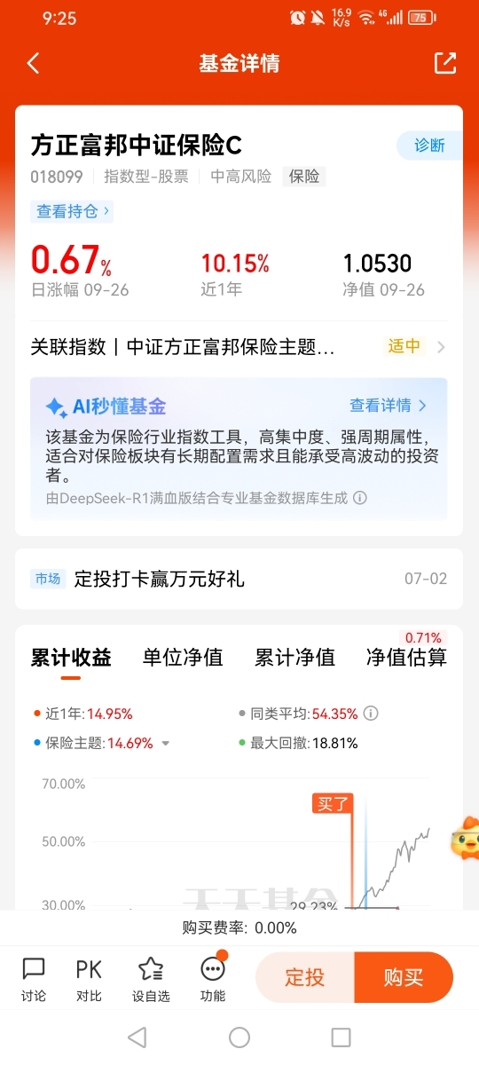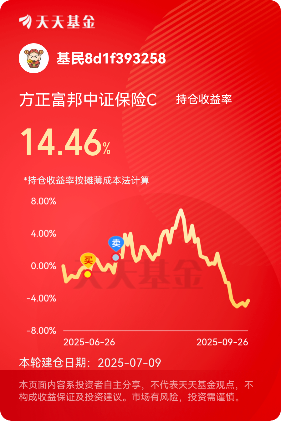 看好这一赛道,$方正富邦中证保险C$是优质工具选择,其投资价值与体验优势突出。作为跟踪中证方正富邦保险主题指数的被动型基金,它能精准覆盖中国人寿、中国平安等龙头险企,权益投资占比近90%,可充分捕捉板块成长收益 。费用上,C类份额零申购费,持有30天以上赎回费为0,搭配1.6%的年化综合运作费率,大幅降低了短期进出成本 。基金采用完全复制法运作,跟踪偏离度与误差控制严格,且运作透明、申赎灵活,能为投资者带来便捷、高效的板块投资体验。@方正富邦基金 #晒收益#