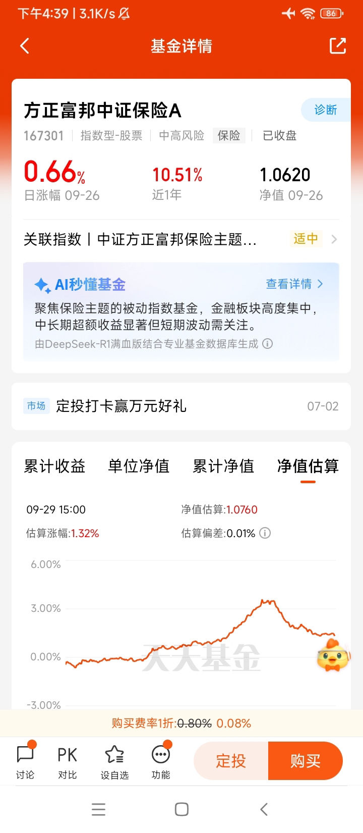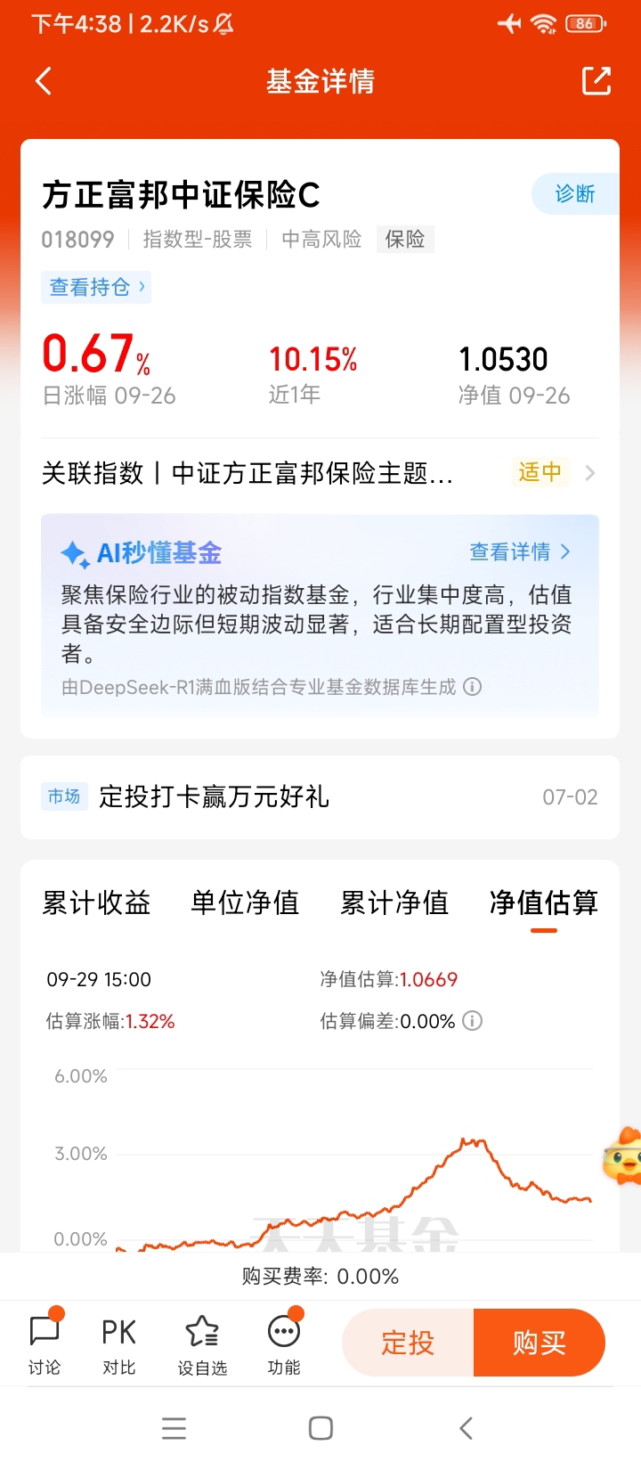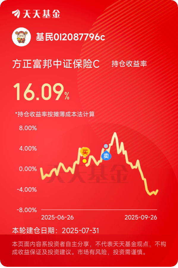最后,我想把$方正富邦中证保险C$推荐给每一位看好保险板块、追求长期稳健收益的投资者。如果你也认可保险行业的未来机遇,又不想在个股选择上花费过多精力,不妨试试这款费率低、跟踪准、体验好的指数基金。当然,投资没有绝对的“稳赚不赔”,但只要我们锚定长期,坚持定投,相信时间会给我们一份满意的答案。我会继续持有并定投下去,也期待与更多志同道合的投资者一起,分享保险板块的成长红利。@方正富邦基金