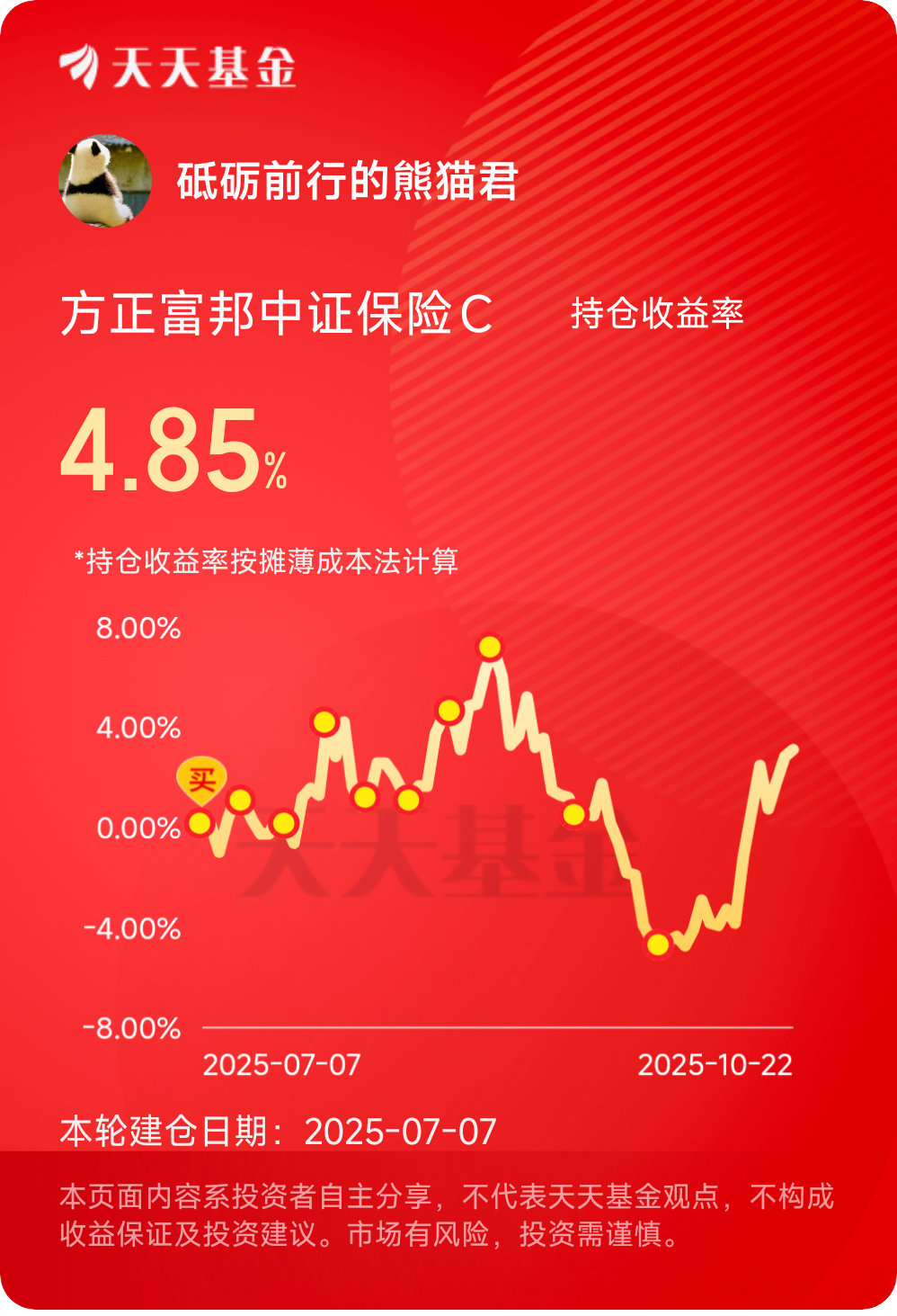 友友们!今天想和大家聊聊我持仓已久的宝藏基金——方正富邦中证保险C(018099)。在A股跌宕起伏的2025年,这只基金像一艘沉稳的巨轮,用高股息筑起防波堤,又以政策红利为风帆,让我在震荡市中守住安全感。今天从行业逻辑、基金拆解到实操心得,带你看透它的独特魅力!