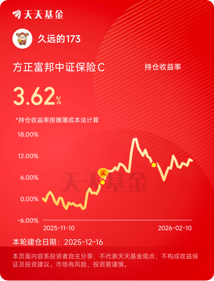 #晒操作# 保险板块是当前市场上少有的“进可攻、退可守”的选择!市场上涨时,能受益于权益市场的弹性;震荡调整时,又有高股息提供稳定回报。无论行情怎么变,配置保险都能多一份从容。$方正富邦中证保险C$ #晒收益#