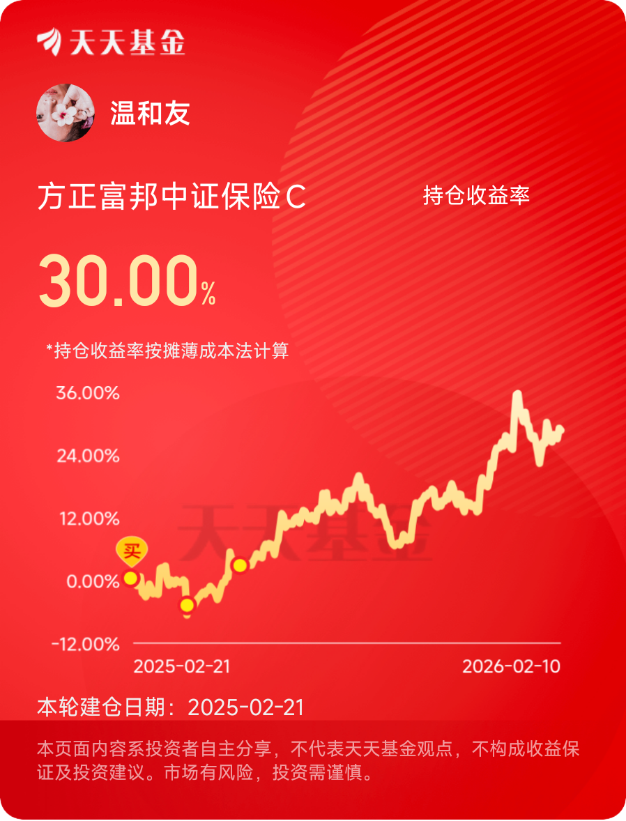 保险板块正成为机构调仓的重点方向!低估值、高股息、业绩稳健增长的特征,特别契合机构资金对长期配置的需求。随着市场风格逐步切换,越来越多机构开始增配保险板块,资金关注度持续提升。$方正富邦中证保险C$ #晒收益#