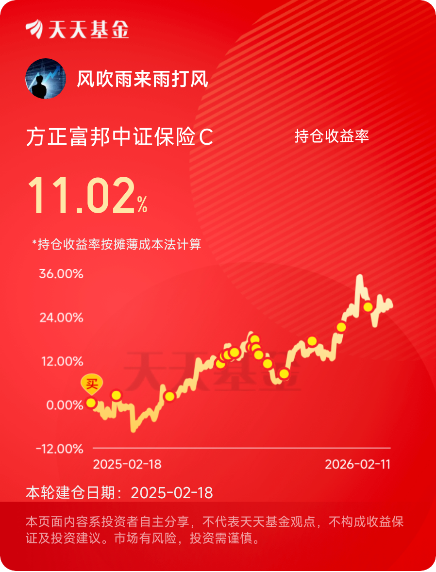 #晒操作# 现在这个位置,反而可能是不错的观察窗口。保费端稳中有进,资产端随着市场回暖也在改善,“资负两端”都在往好的方向走。$方正富邦中证保险C$ #晒收益#