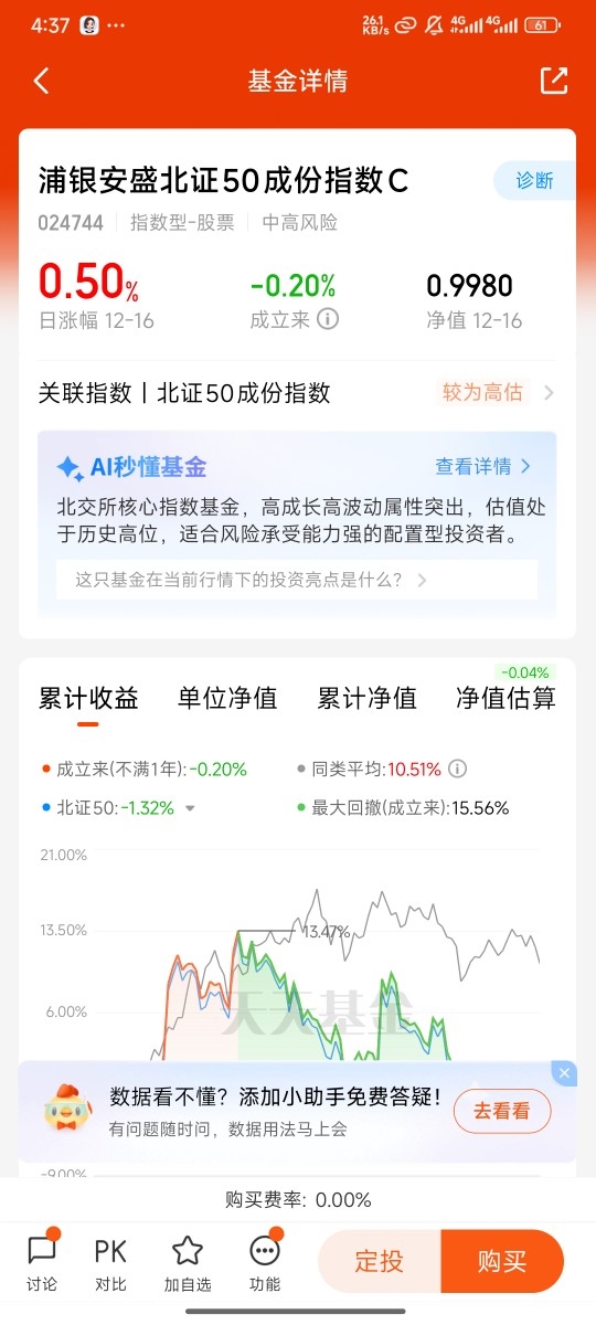 对咱们普通投资者来说,年末布局北证50正是时候,一方面有政策和资金的双重利好加持,另一方面浦银这款产品又能完美解决额度和费率的痛点,简直是天时地利人和。