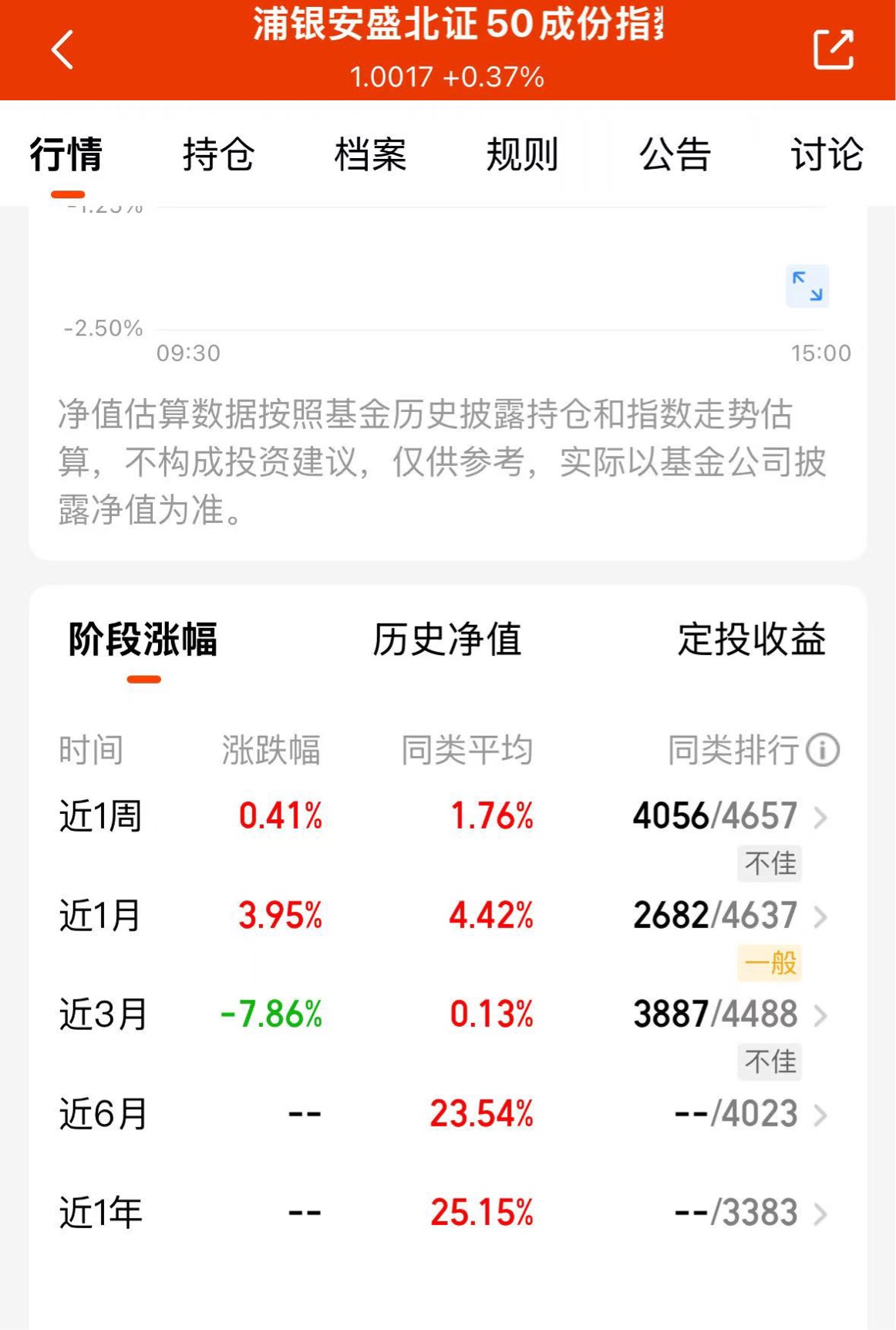 北证50基金有份额限制,大部分都限购了,不限额的$浦银安盛北证50成份指数C$跟