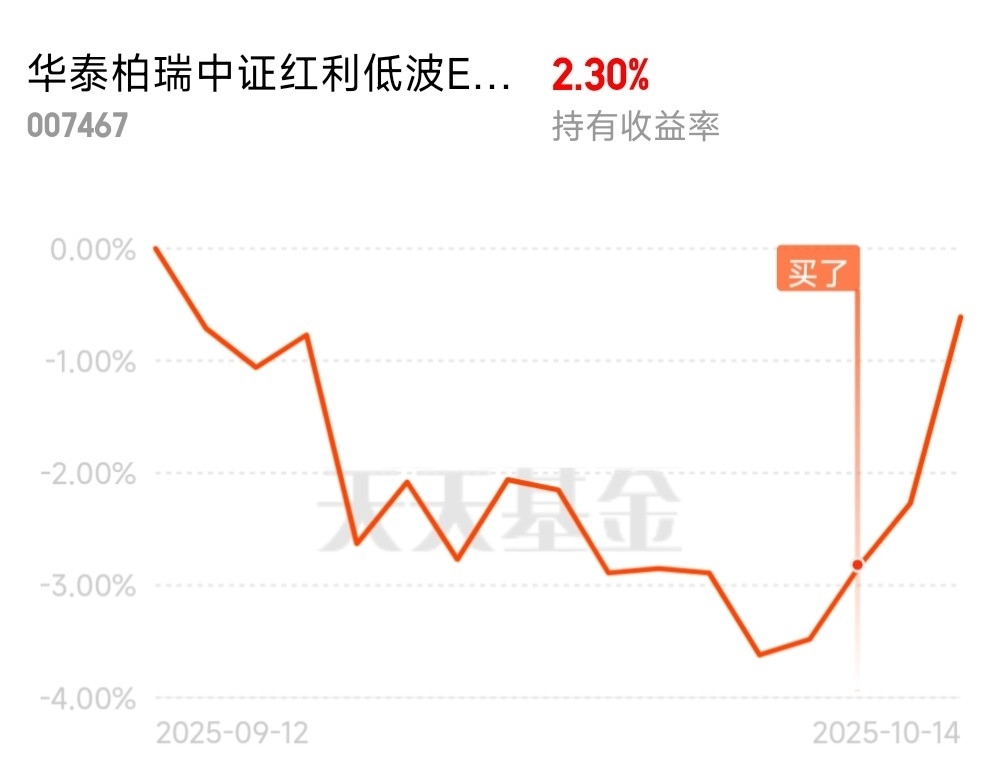 都说红利指数防守强,没想到$华泰柏瑞中证红利低波ETF联接C$ 能连涨5天!今天再添0.20%,在这种行情里简直是一股清流。