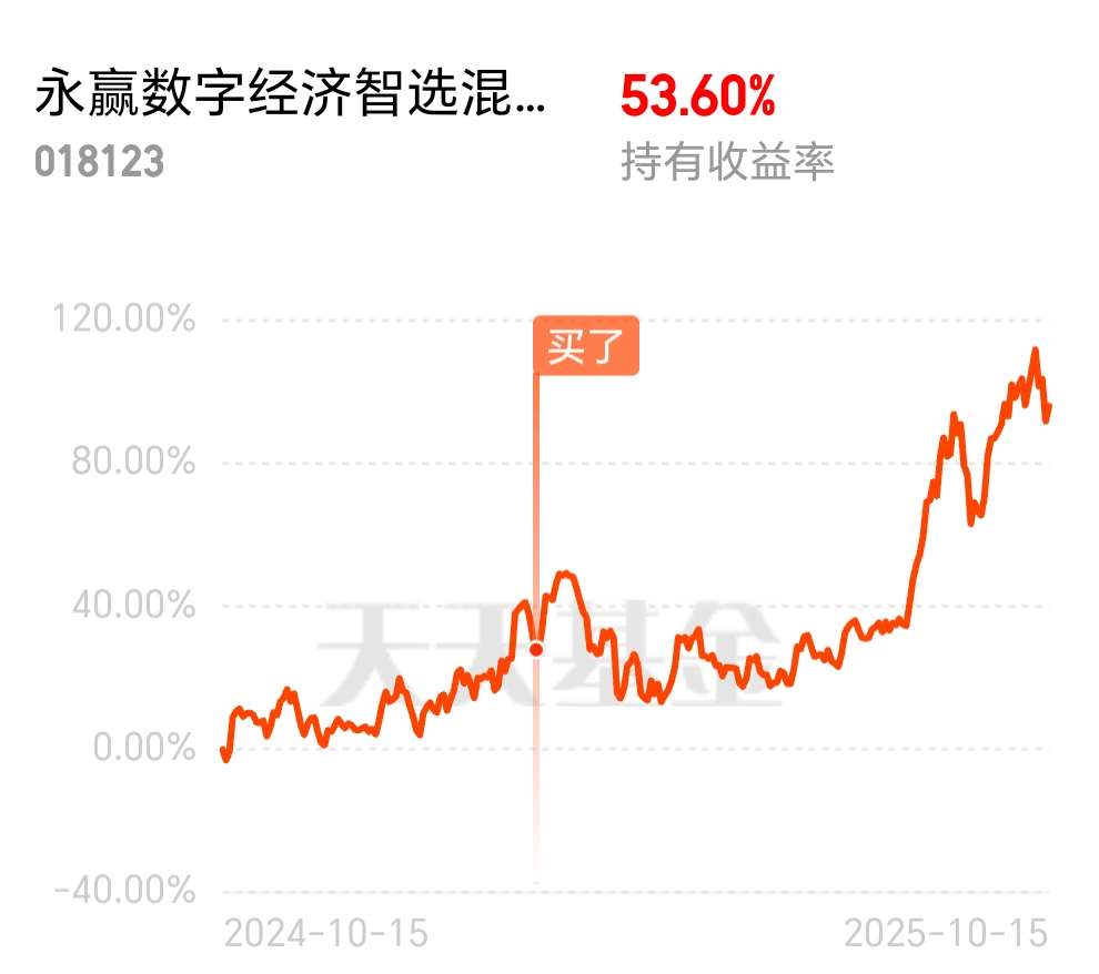 $永赢数字经济智选混合发起C$今天加了些仓位,继续看好后续行情