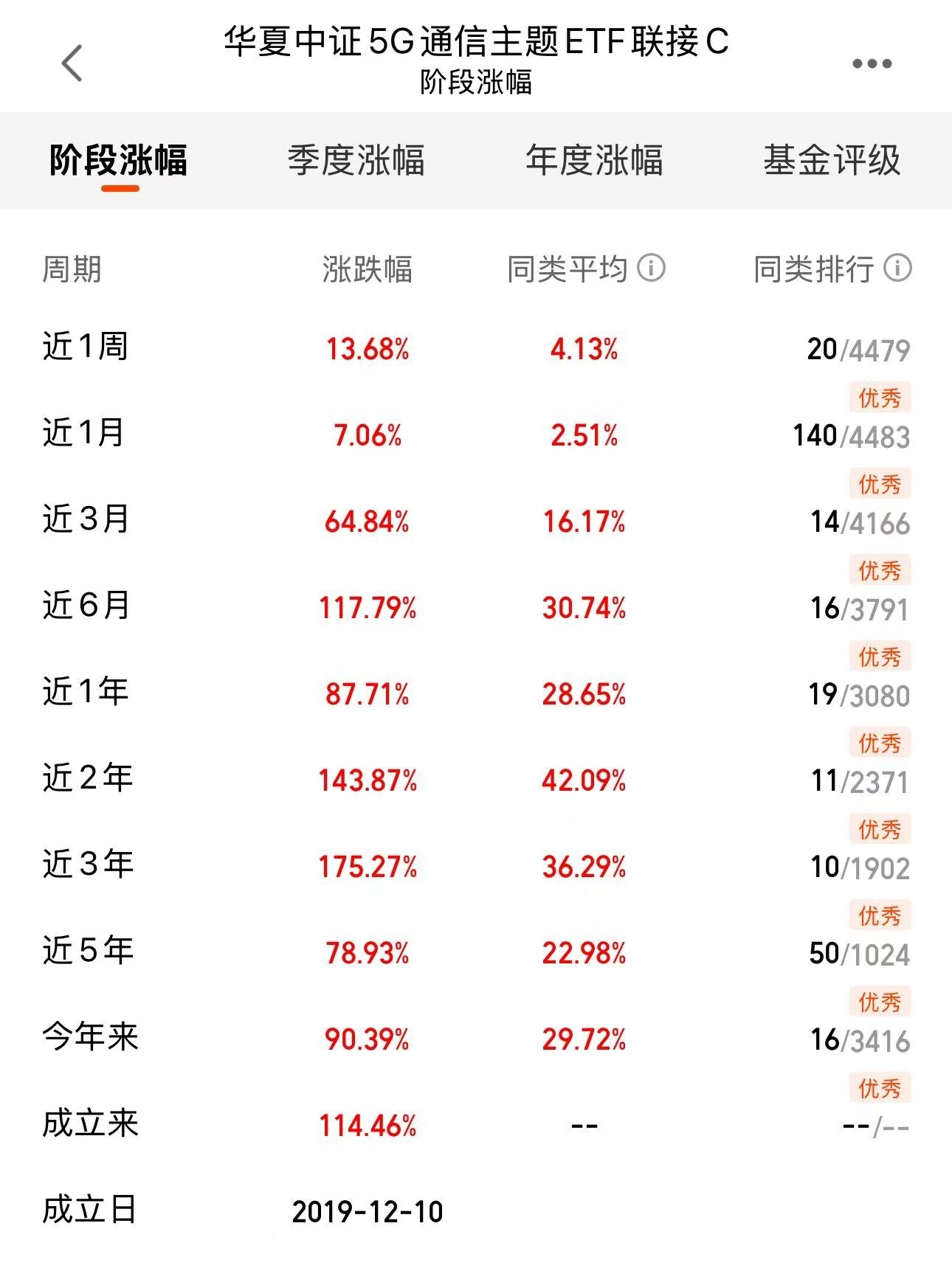 科技掘进路线清晰,连红2天,今天继续上涨2%+,近一周收益排名同类前20,其他各阶段的业绩也都靠前,$华夏中证5G通信主题ETF联接C$布局板块龙头企业,收益才开始,继续期待