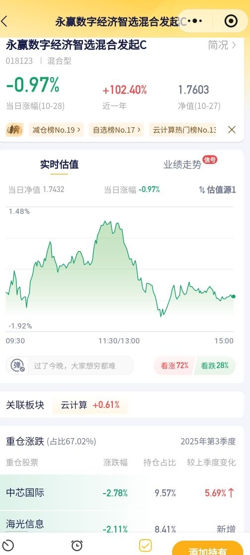 沪指今天冲高回落,收跌0.22%,4000点失守。CPO板块因为AI算力需求涨得好,港口、军工领涨,有色走弱。情绪指标还行,我觉得别盲目追涨,基金先观望~