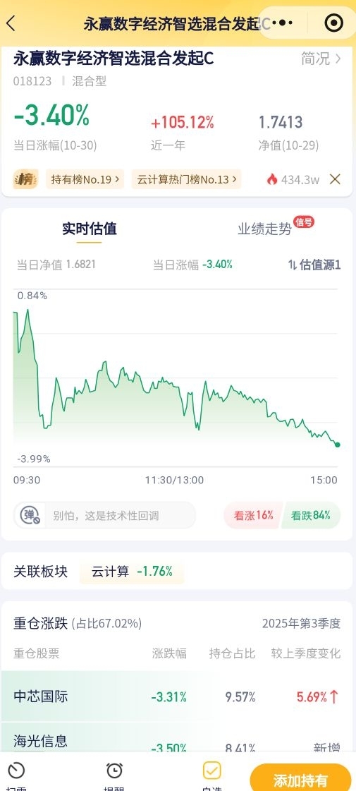 今儿盘面有点弱,沪指跌0.73%,CPO板块回调。但深层看,北美巨头算力需求还在涨,光模块订单不愁 。两融余额突破2.5万亿,说明大家还在进场。我手里的基金继续持有,不被短期波动带偏。