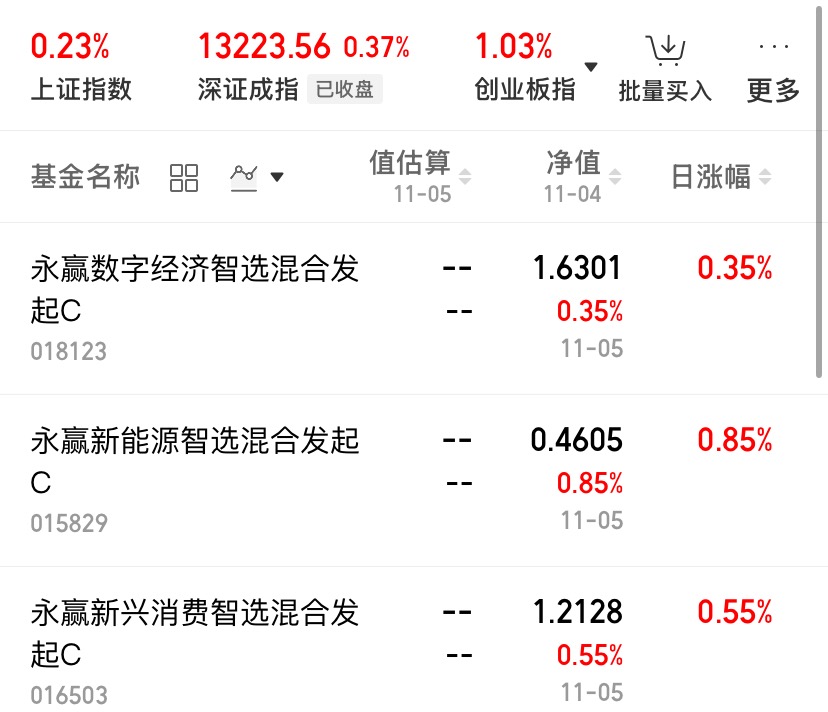 $永赢新能源智选混合发起C$ :聚焦新能源车和机器人赛道,今天上涨0.85%,近六个月收益19.46%;