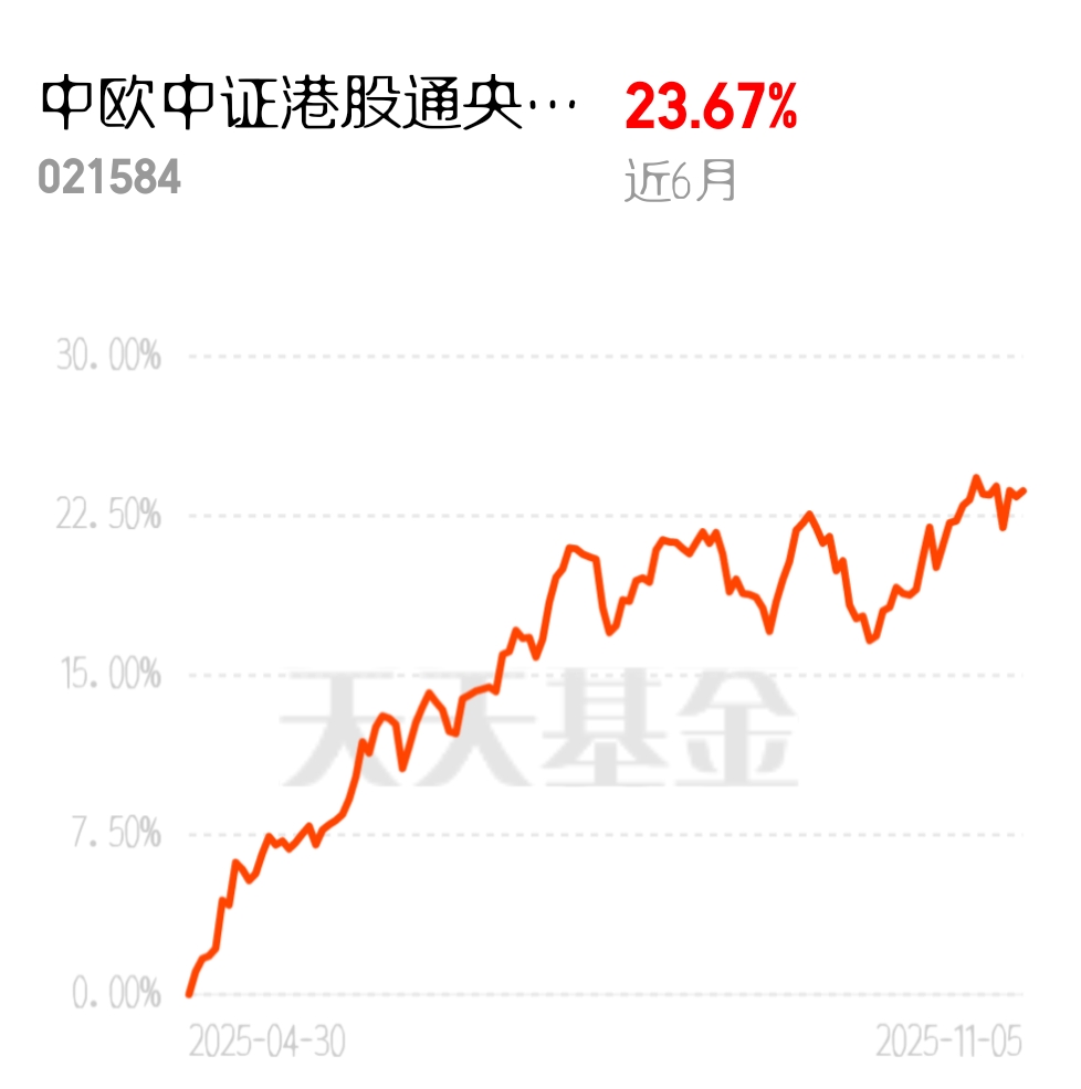 现在资产配置都讲究跨市场布局,港股通作为重要方向,让投资选择更丰富。中欧中证港股通央企红利指数(QDII)C近6个月涨了23.67%,聚焦央企红利赛道,帮你在港股市场抢占优质资产。