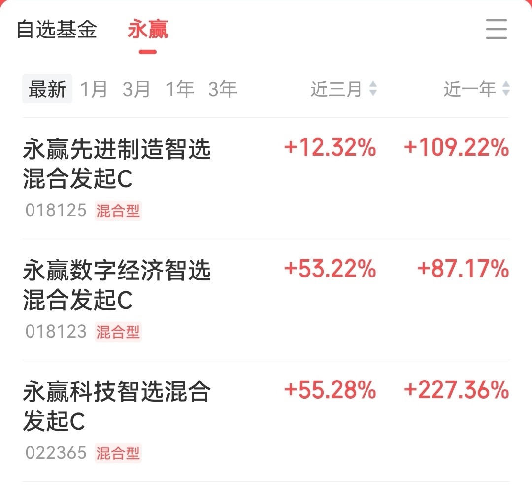 #4000点 到底要不要止盈?# 2025年上半年主动权益规模增长显著,智选系列产品贡献突出。随着市场对新质生产力的关注度提升,该系列有望吸引更多投资者,规模或进一步扩张具备长期投资价值和发展潜力;一起来看看永赢智选系列的表现吧,$永赢先进制造智选混合发起C$ 近三个月涨幅+12.32%,近一年涨幅+109.22%;$永赢数字经济智选混合发起C$ 近三个月涨幅+53.22%,近一年涨幅+87.17%;$永赢科技智选混合发起C$ 近三个月涨幅+55.28%,近一年涨幅+227.36%