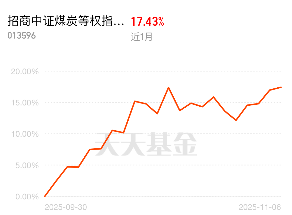 工业产能持续释放,各行业用煤需求逐步回升,煤炭市场需求面改善。招商中证煤炭等权指数C近1个月涨幅达17.43%,今早盘破1%,贴合工业产能释放趋势,投资回报靠谱。