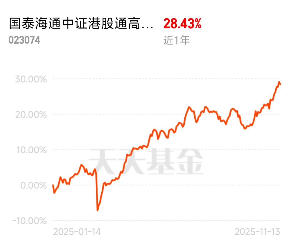 科技感觉4季度很动荡啊,这时候还是要点红利打底会更有保障,$国泰海通中证港股通高股息投资指数发起(QDII)C$ 就很符合