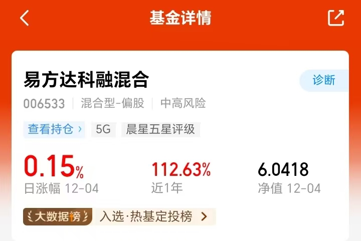 像$易方达科融混合(OTCFUND|006533)$A+H 股布局科技、新能源等领域,近一年涨幅达 112.63%;同系列的$易方达科讯混合(OTCFUND|110029)$聚焦A股,获机构青睐。二者均实现高收益与低回撤兼顾,既能精准捕捉新能源等板块爆发红利,又能通过多元配置对冲波动,适配当前慢牛轮动行情。