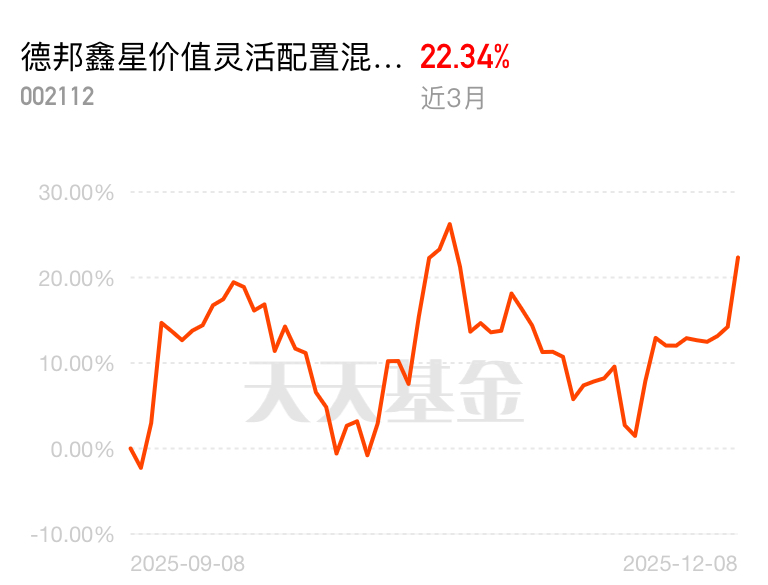 今儿盘面上题材股轮动飞快,一不小心就踏空,这只却稳稳跟上。德邦鑫星价值灵活配置混合 C 近 3 个月 22.34%,基金经理眼光毒辣,热点一个不落。$德邦鑫星价值灵活配置混合C$