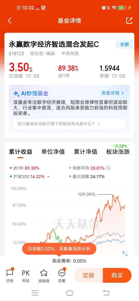$永赢数字经济智选混合发起C$AI算力方向,弹性足,昨天涨幅3.50%,近三个月
