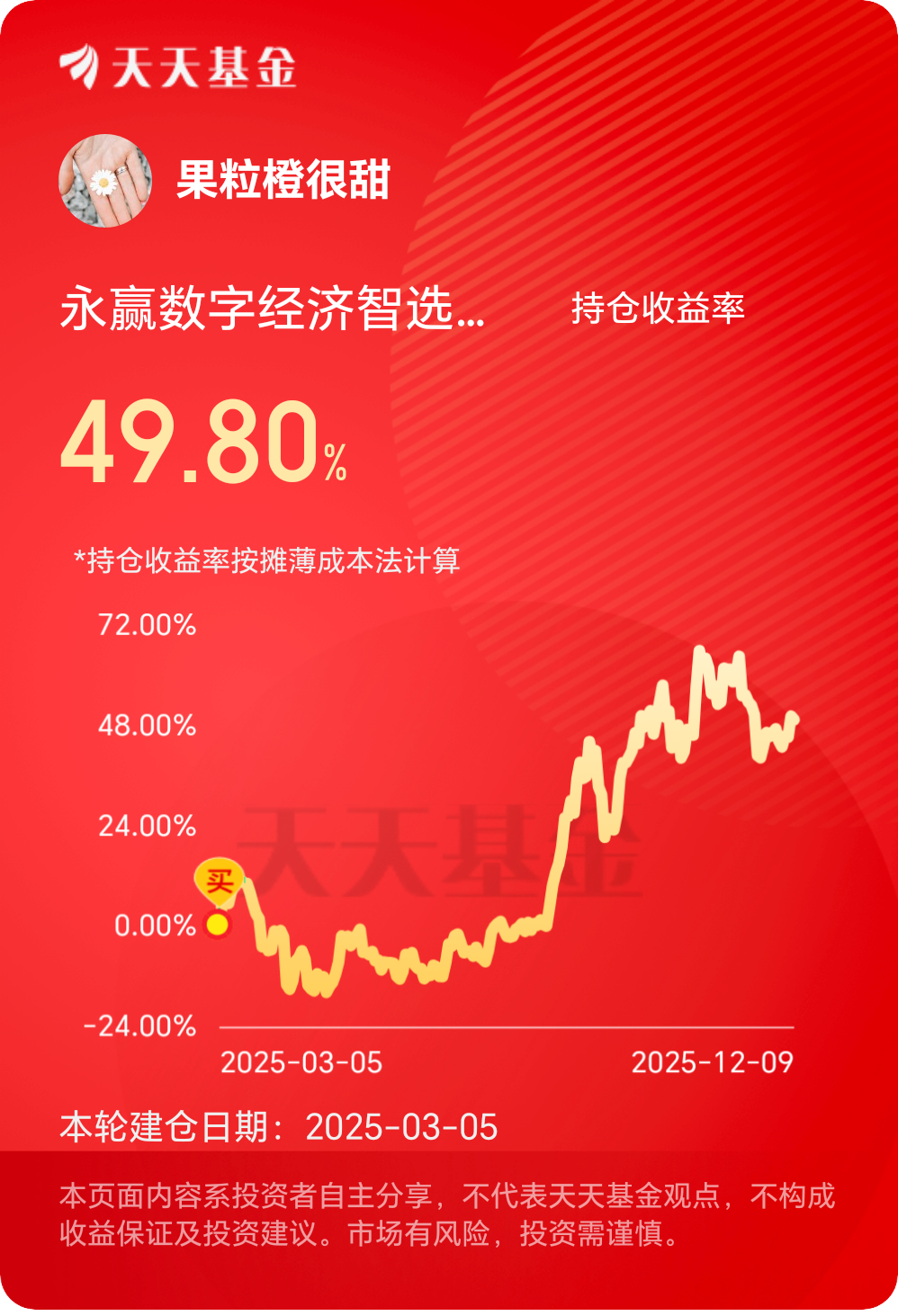 市场短期有波动是正常现象,眼光放长远些看。$永赢数字经济智选混合发起C$ #晒收益#